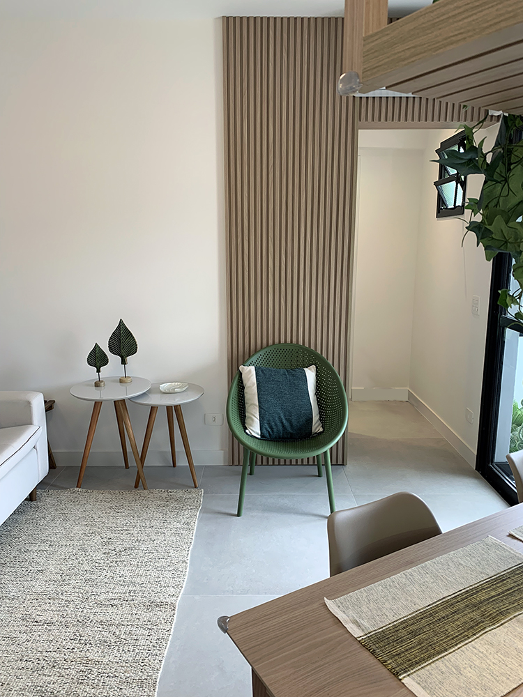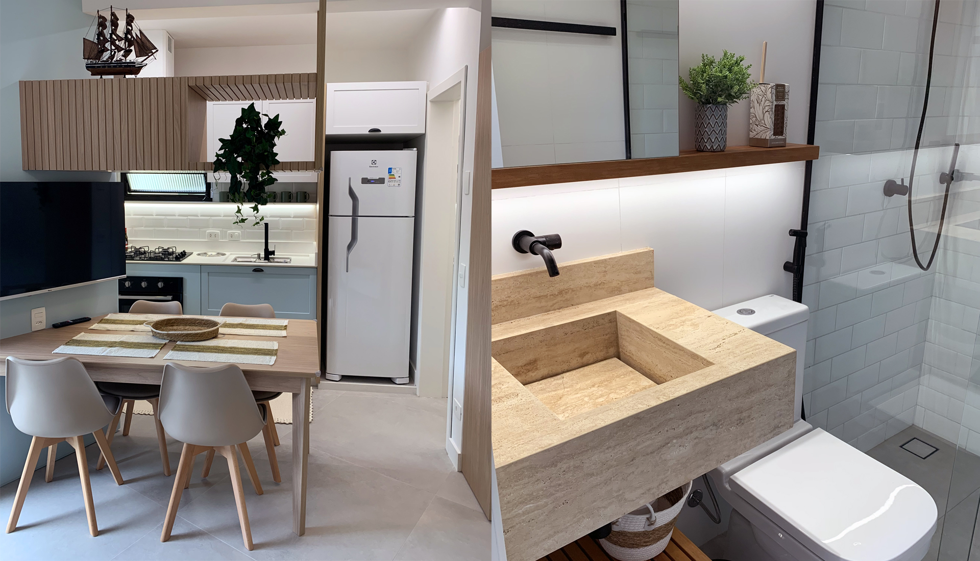 Este projeto de renovação integral aborda as necessidades de um casal que adquiriu um apartamento antigo e compacto, idealmente localizado em um condomínio com excelente estrutura para uma casa de praia. O principal desafio consistiu em transformar o espaço, mantendo sua essência e otimizando cada ambiente.