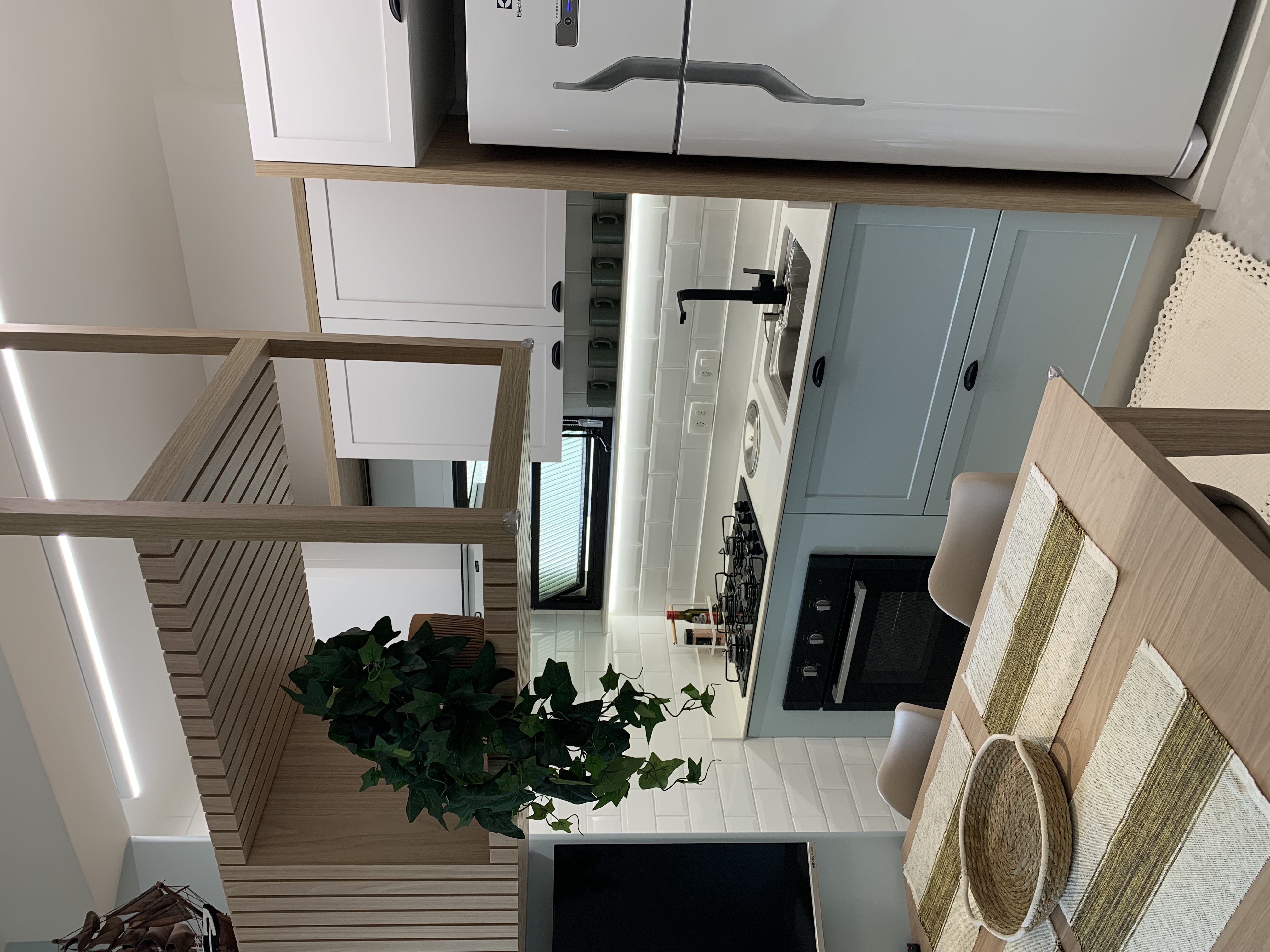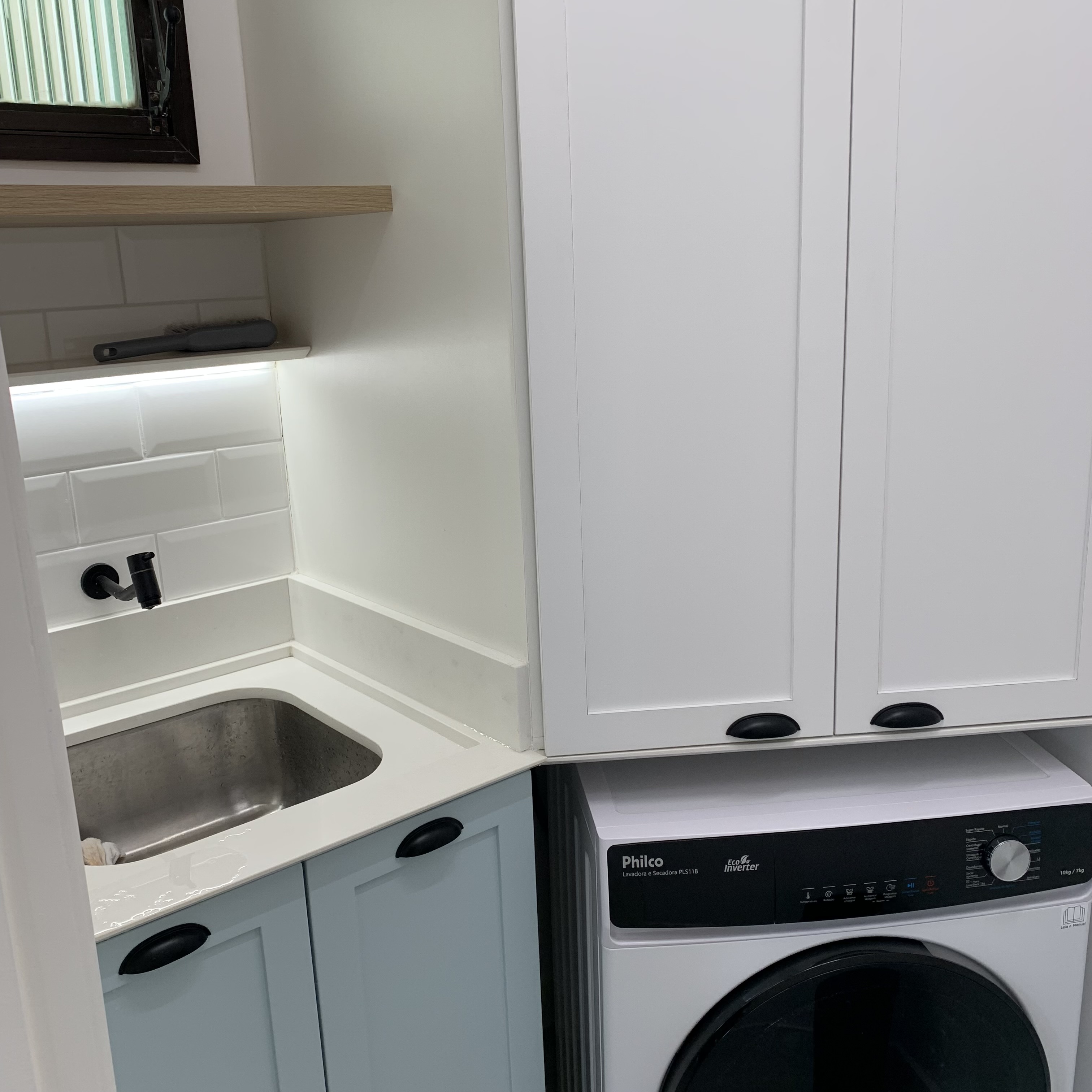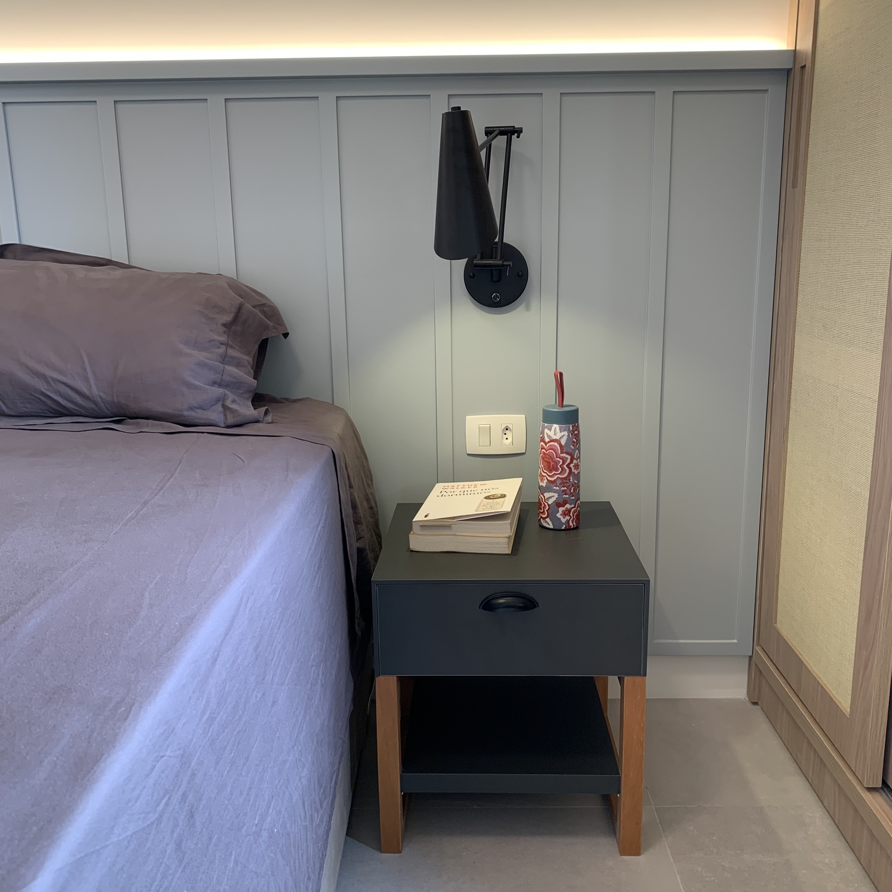 Os acabamentos da marcenaria são em MDF laqueado, madeirado e branco, refletindo um design escandinavo que se manifesta nas cores neutras e claras, linhas retas e simples. O resultado são ambientes acolhedores e confortáveis, que dialogam com a funcionalidade e a estética minimalista.