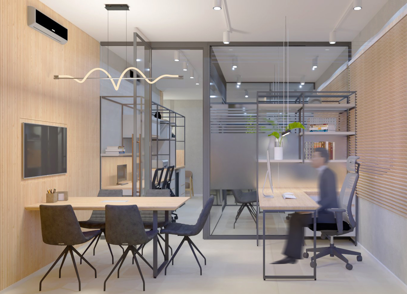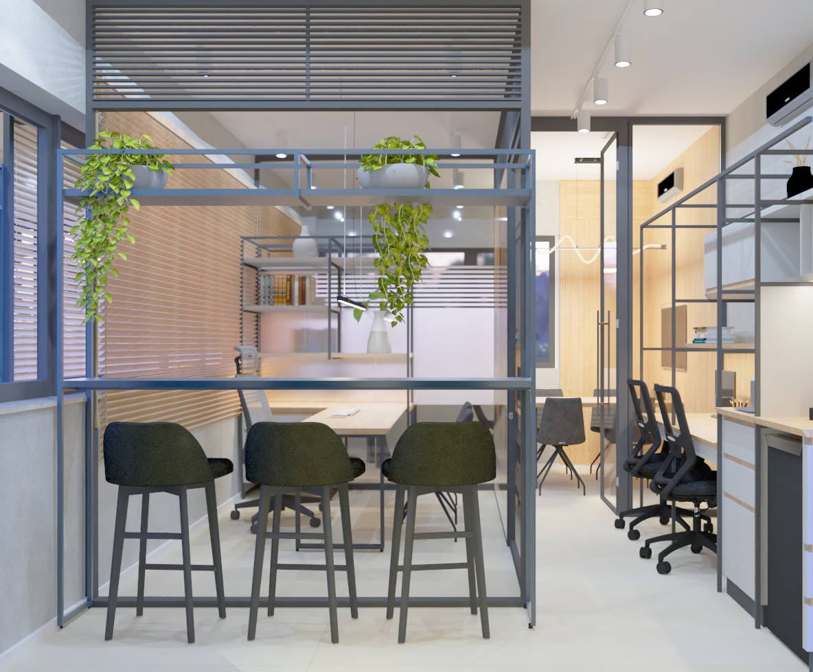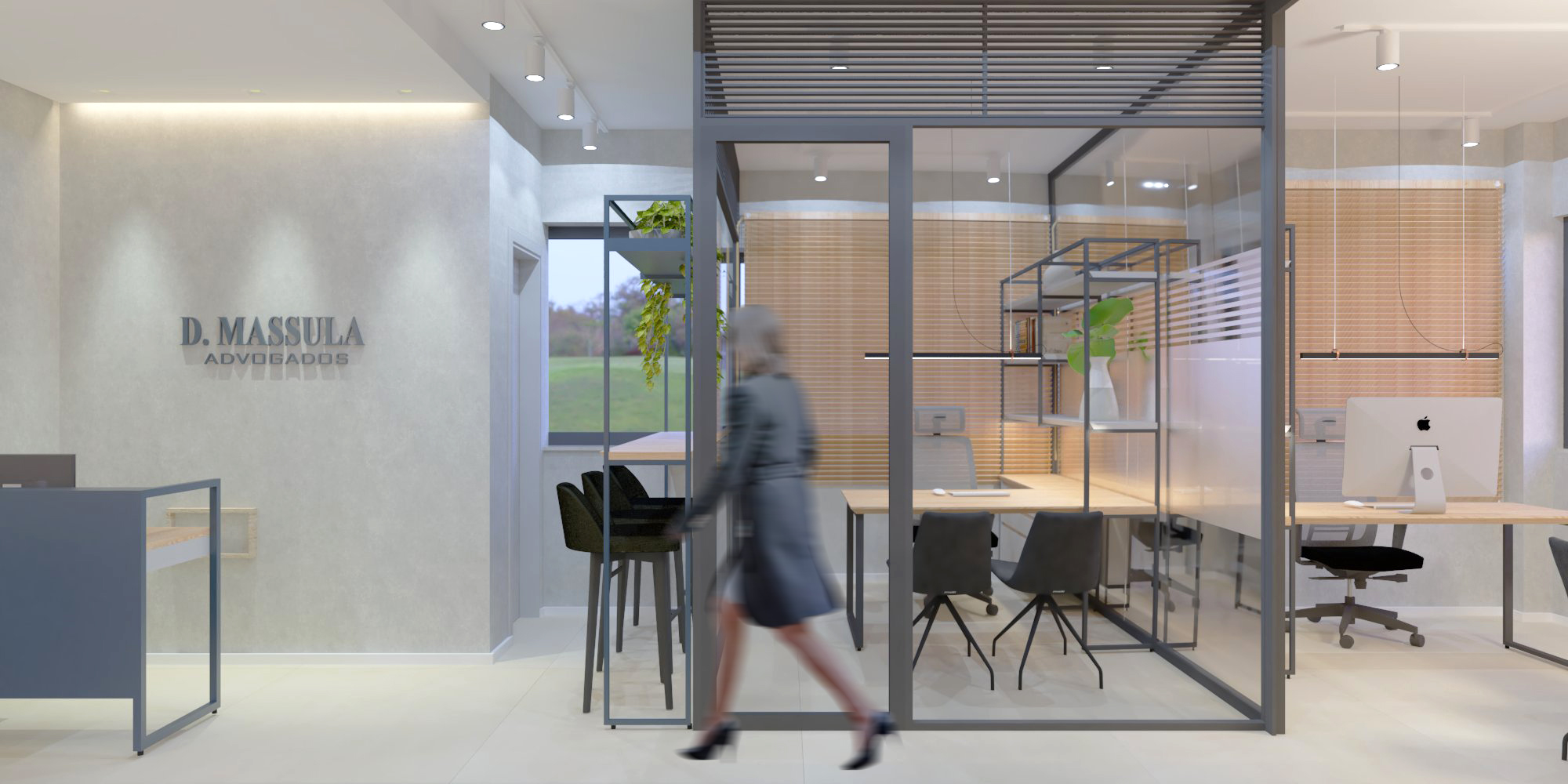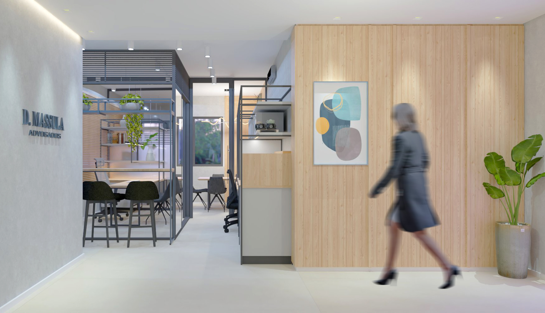 novo escritório otimiza funcionalidade em 38m² com luz natural, priorizando